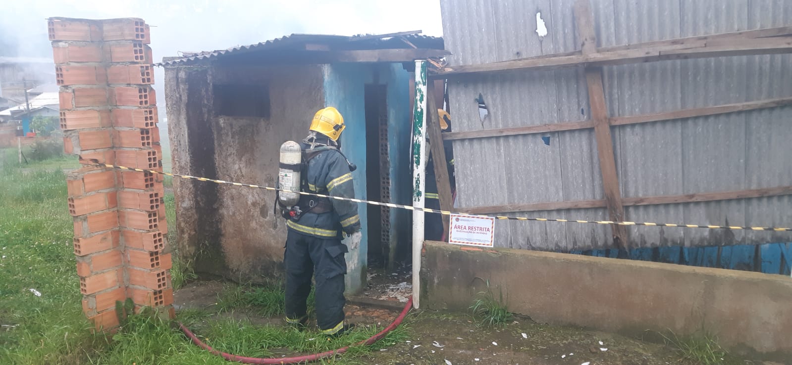O incêndio era em uma casa de madeira de aproximadamente 36 m², era desabitada e em péssimas condições, não tinha móveis nem energia elétrica.