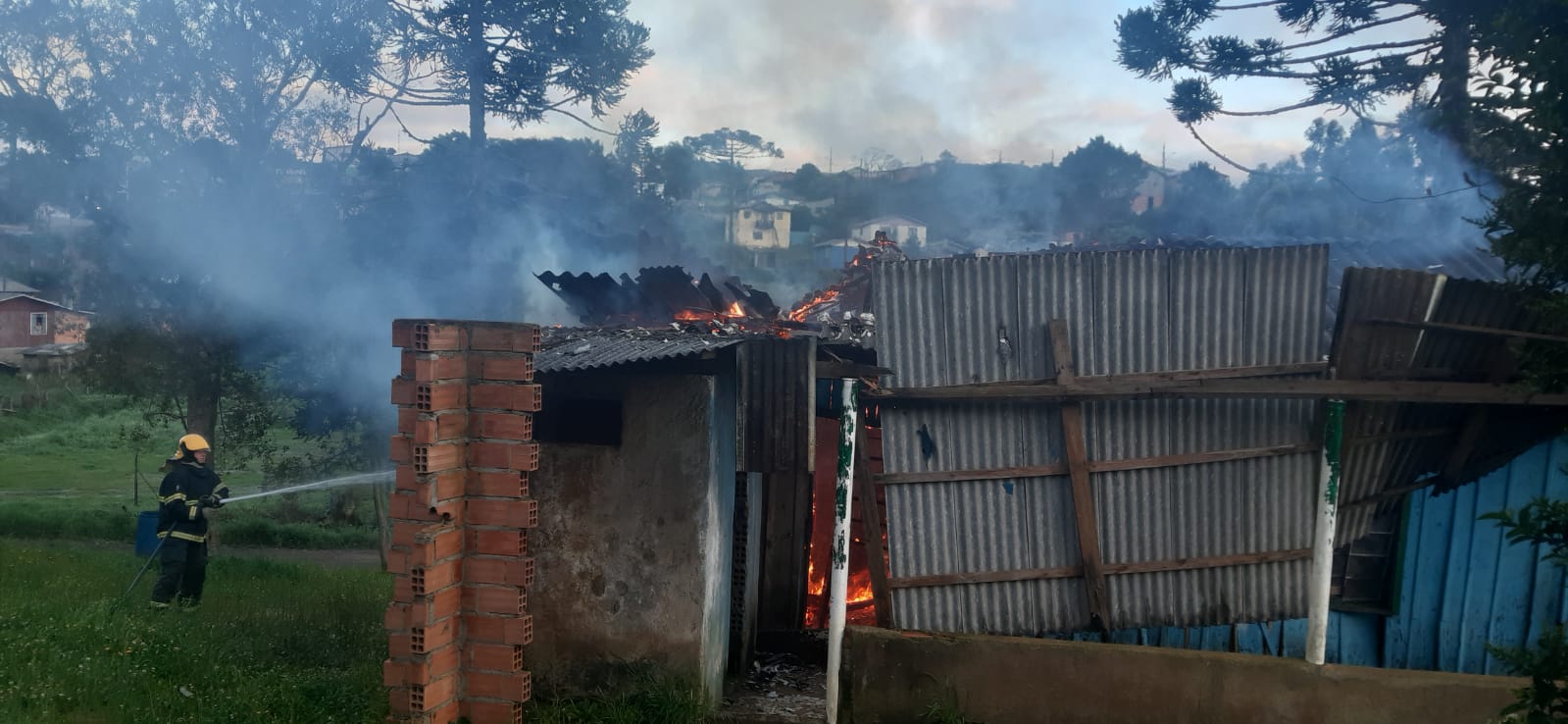 Incêndio atinge casa de madeira em Santa Cecília